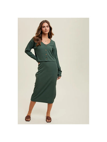 WISHLIST RIBBED KNIT CARDIGAN AND DRESS SET