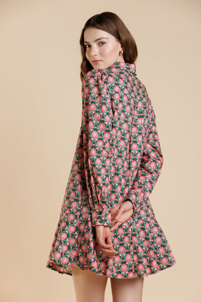 A & SHE FLORAL PRINT LONG SLEEVE MINI DRESS