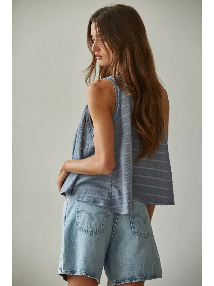 By Together Knit Striped Round Neck Sleeveless Tank Top