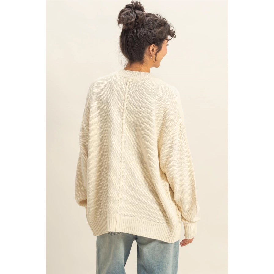 Charm Them All In This Versatile And Chic Cardigan That Is Designed Into A Relaxed Silhouette With A V-Neck, Drop Shoulders And Long Sleeves. It Is Fastened By A Button Closure Down The Center And Accented With Front Patch Pockets.